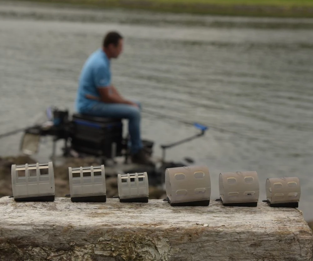 Deze Plastic Cage Feeder combineert de eigenschappen van een dichte plastic voerkorf en een gaaskorf. Dankzij het open design aan de bovenkant zal het voer en aas snel vrijkomen. Echter de afgedichte zijkanten reduceren het vrijkomen van het voer en aas bij het neerkomen en afzinken in het water. De getaperde vorm van het gewicht met het zwaartepunt naar beneden zorgt ervoor dat deze korven zeer goede werpeigenschappen bezitten. Het metalen bevestigingsoog is zeer robuust in het gewicht verwerkt. De Plastic Cage Feeders zijn verkrijgbaar in Small, Medium en Large formaat in gewichten variërend van 10 tot 50g.